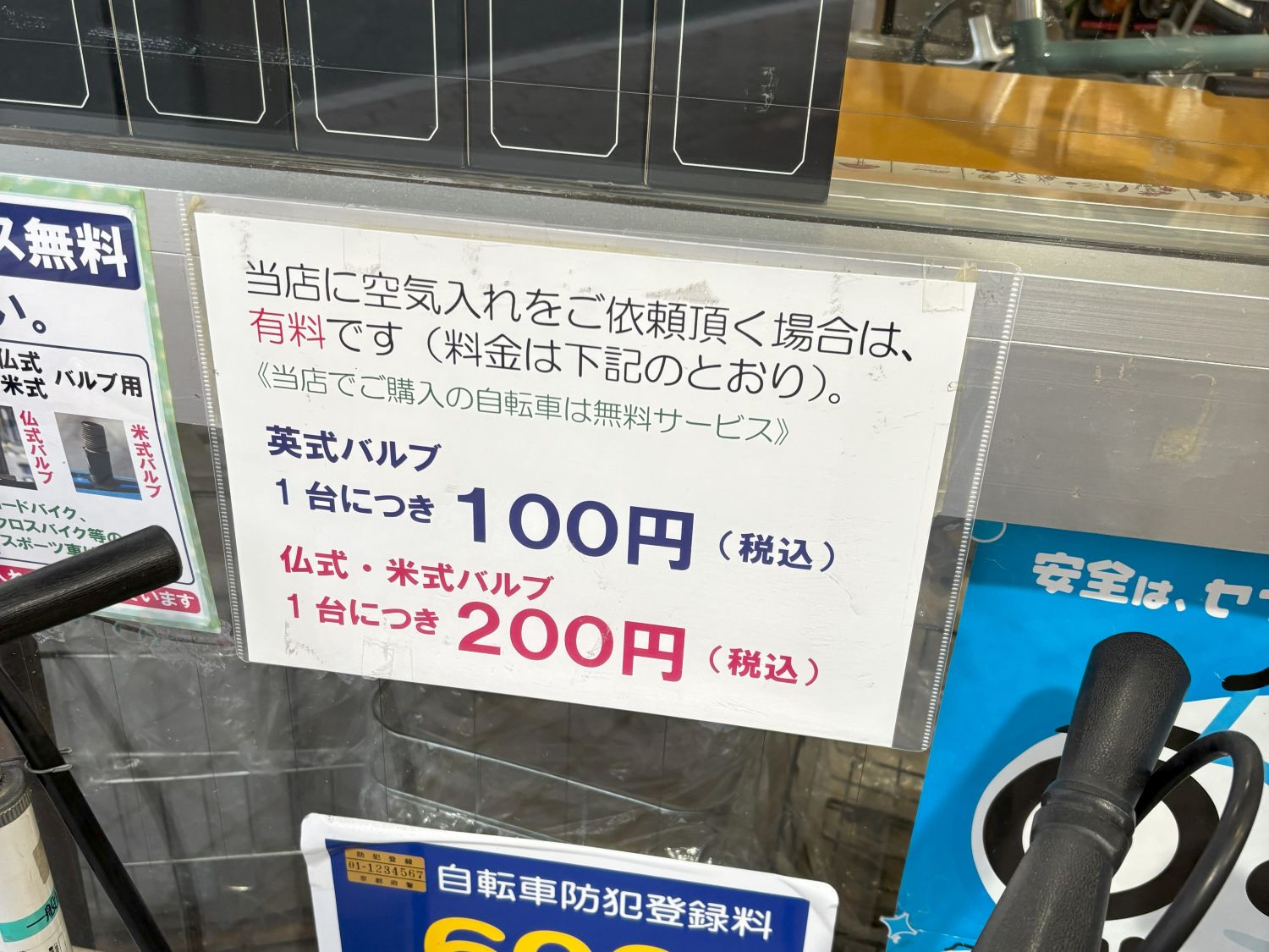 ★特に他店で購入された方ですが、料金を取ってもらわないと空気入れをお願いしにくいという声が多かったこと。