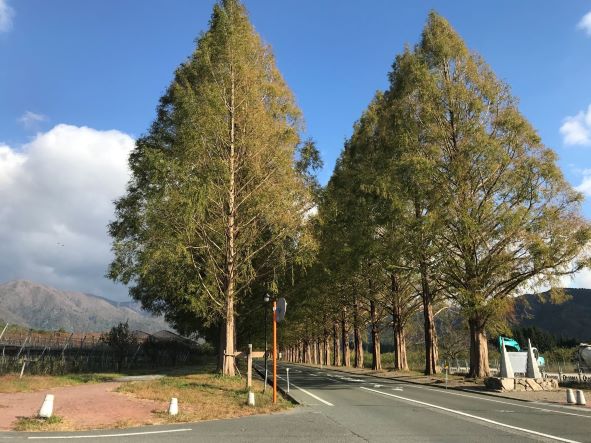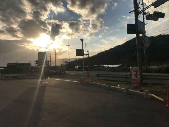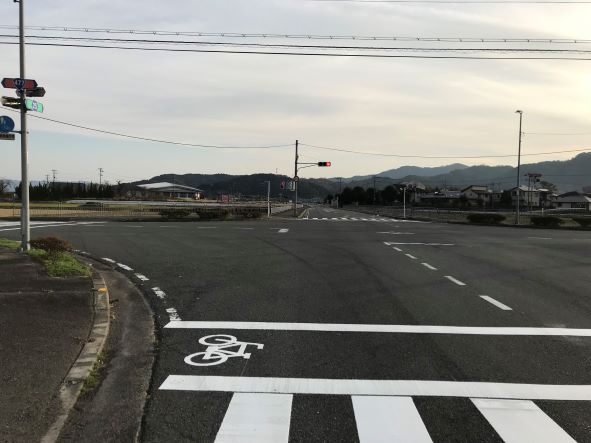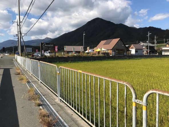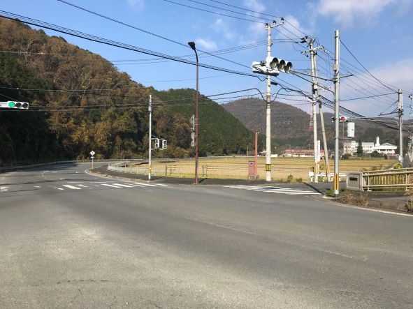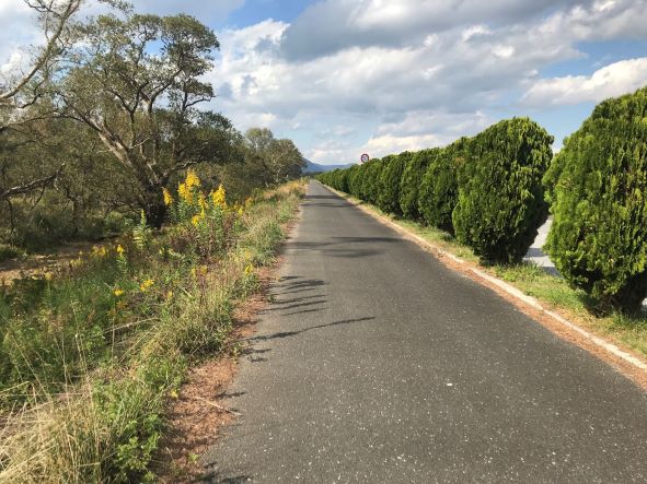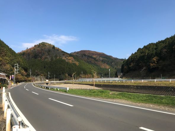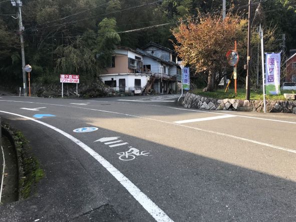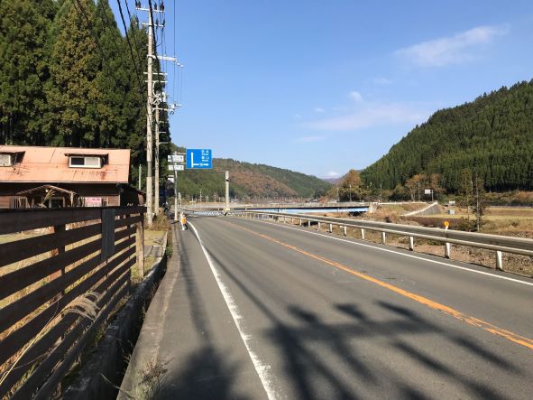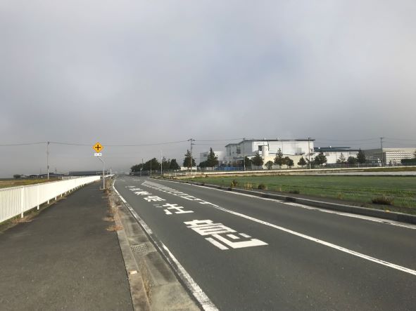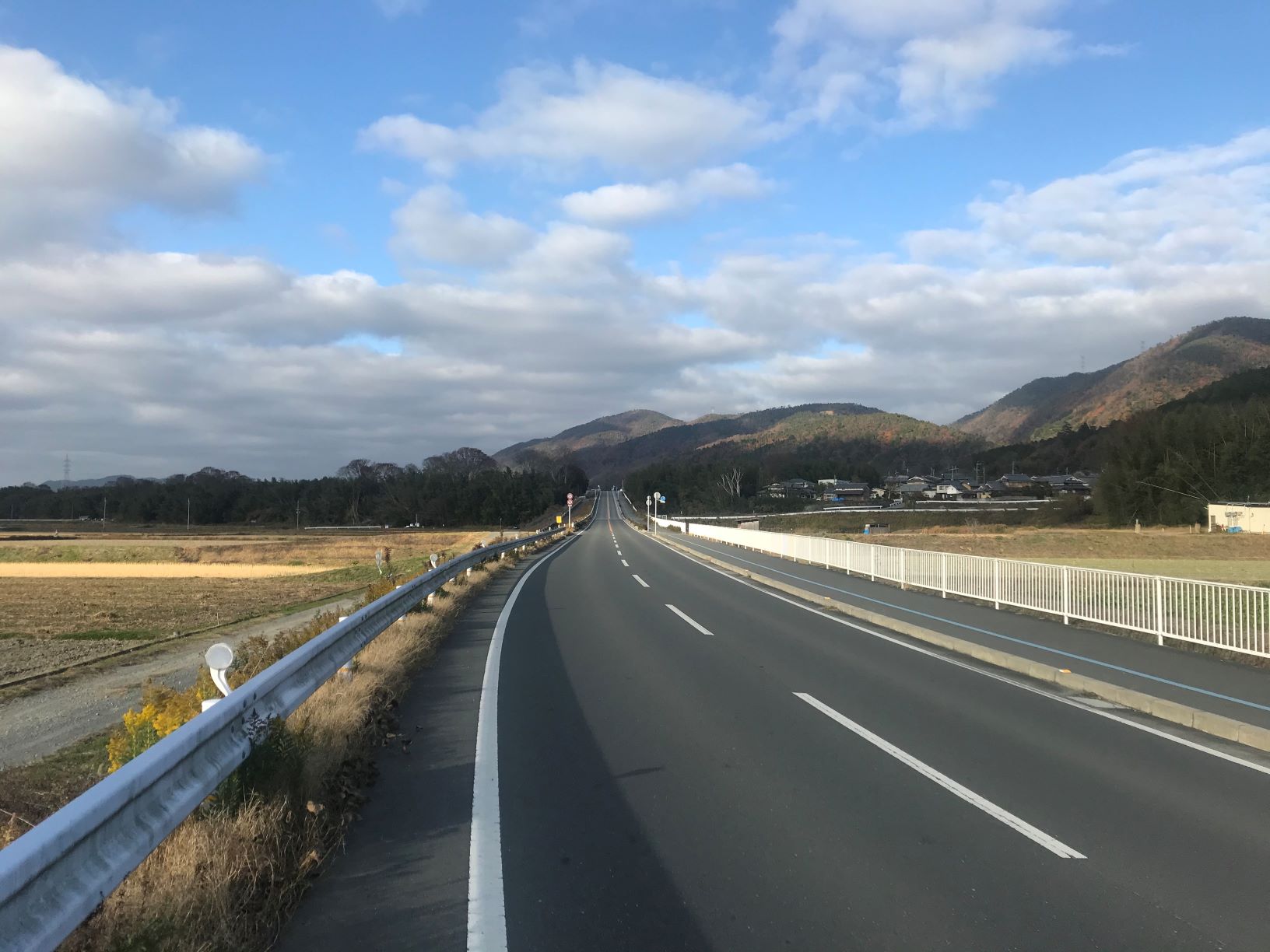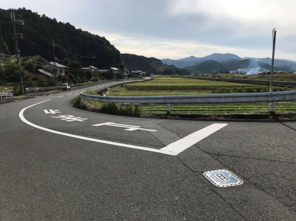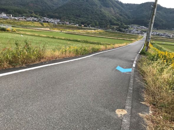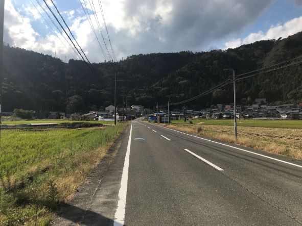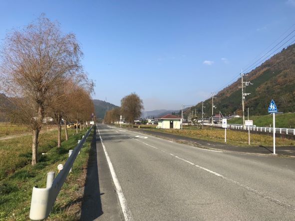 吉富の交差点を越えて真っ直ぐ田んぼの間を走っていくと、だんだん登り坂になってきます。