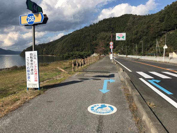 - 途中トンネルが2つありますが、警察署などの指示どおり、歩行者・自転車は歩道を通ります(広めの歩道です)。