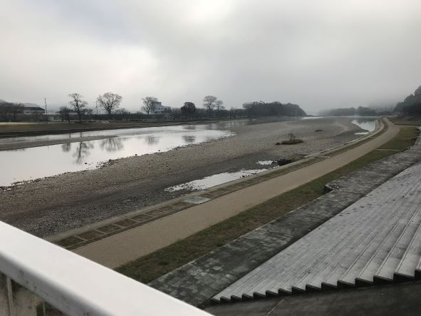 当店のある八木駅前通りから旧国道と言われる大堰川沿いの堤防を走り、吉富という地区に出ます。
