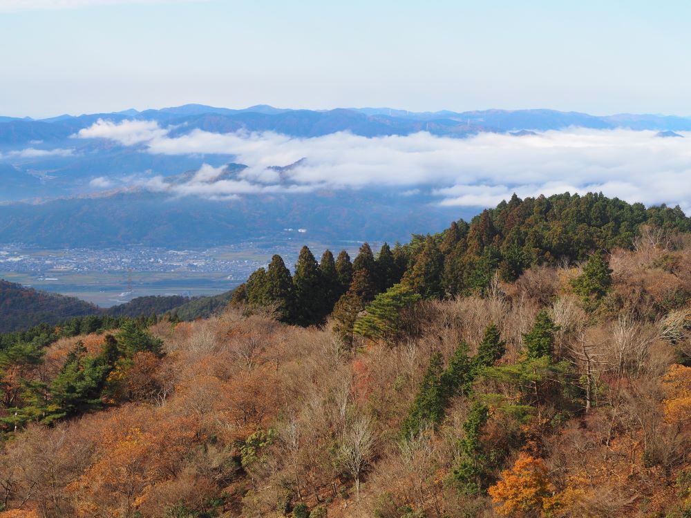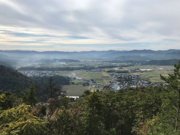 亀岡方面の景色です。頂上での休憩も入れて、2時間もあれば、ゆっくり散策を楽しめるかと思います。ただ、終始寂しいところではあるので、登山道をしっかり守って登山を楽しんで下さい。