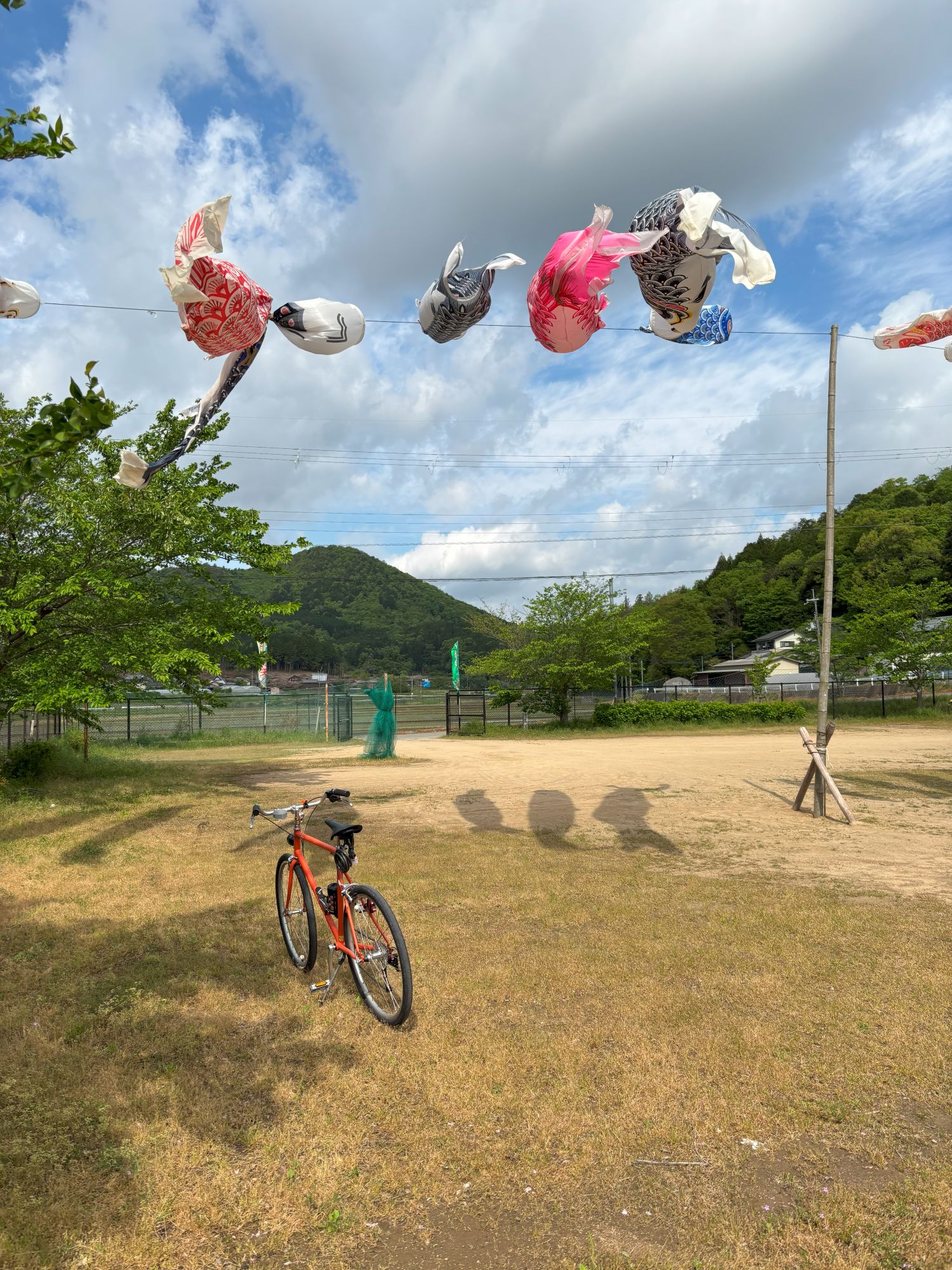 - 途中園部町の口司・口人のあたりで、こいのぼりを見学に寄り道しました。
