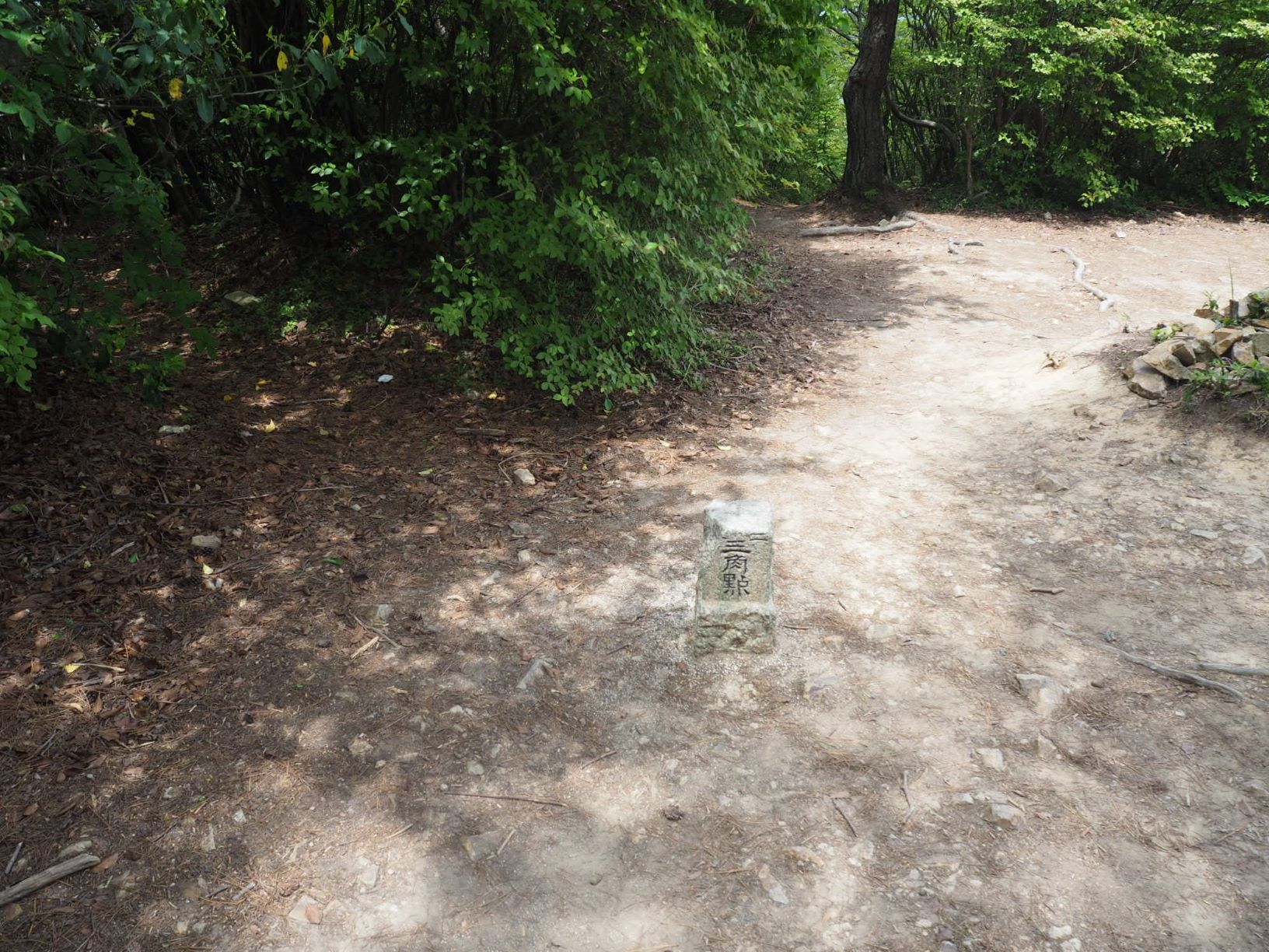 中山山頂に到着しました。あまり大きい目印などもないので、見逃してしまうのですが、進行方向の左手に入ると、こんな三角点のある広場があります。ここで弁当など食べて休憩されている方が多いです。