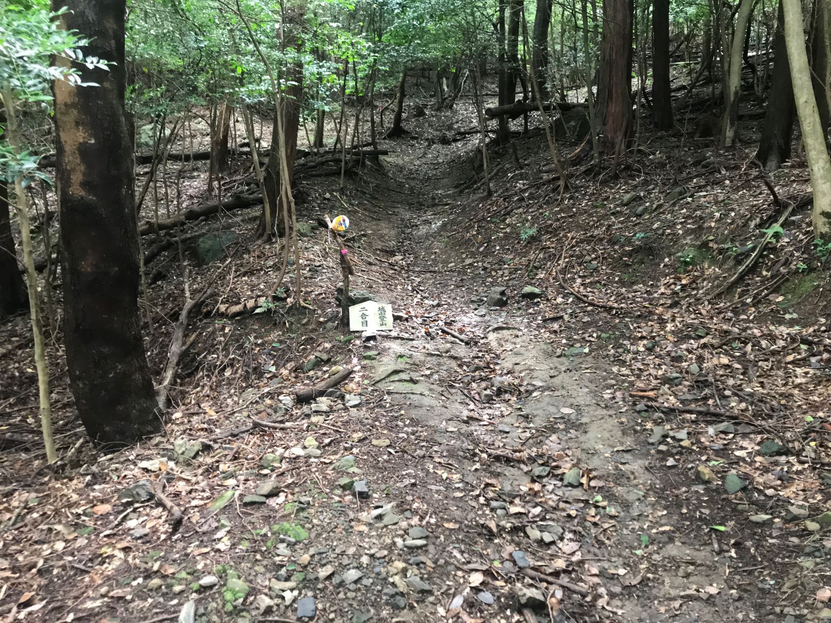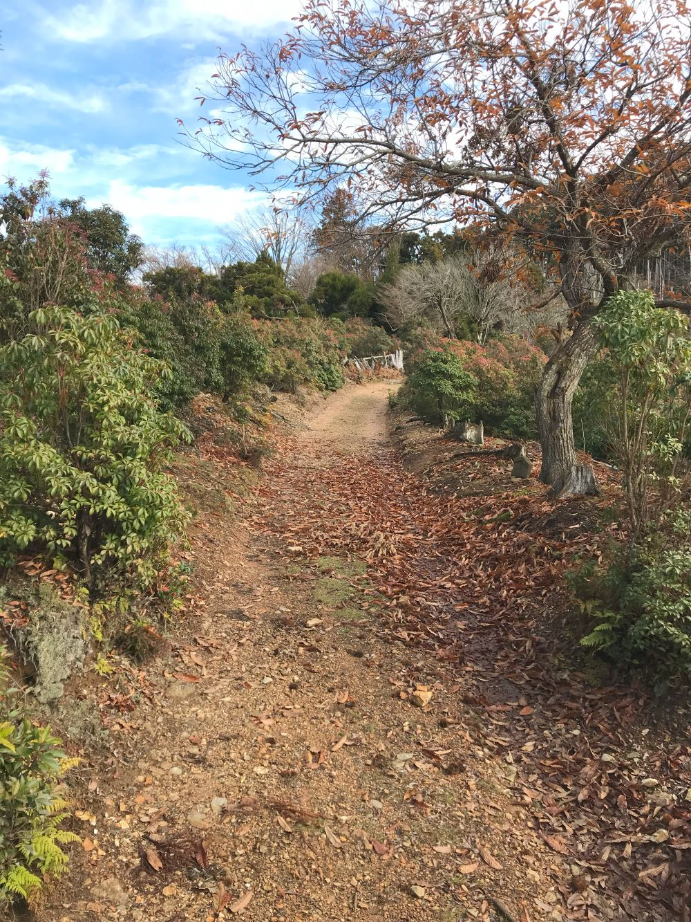 頂上を過ぎてしばらくあるくと、満願寺西山、山本駅方面へ向かう分岐点がでます。ここから結構距離があり、アップダウンも多いので、要注意です。