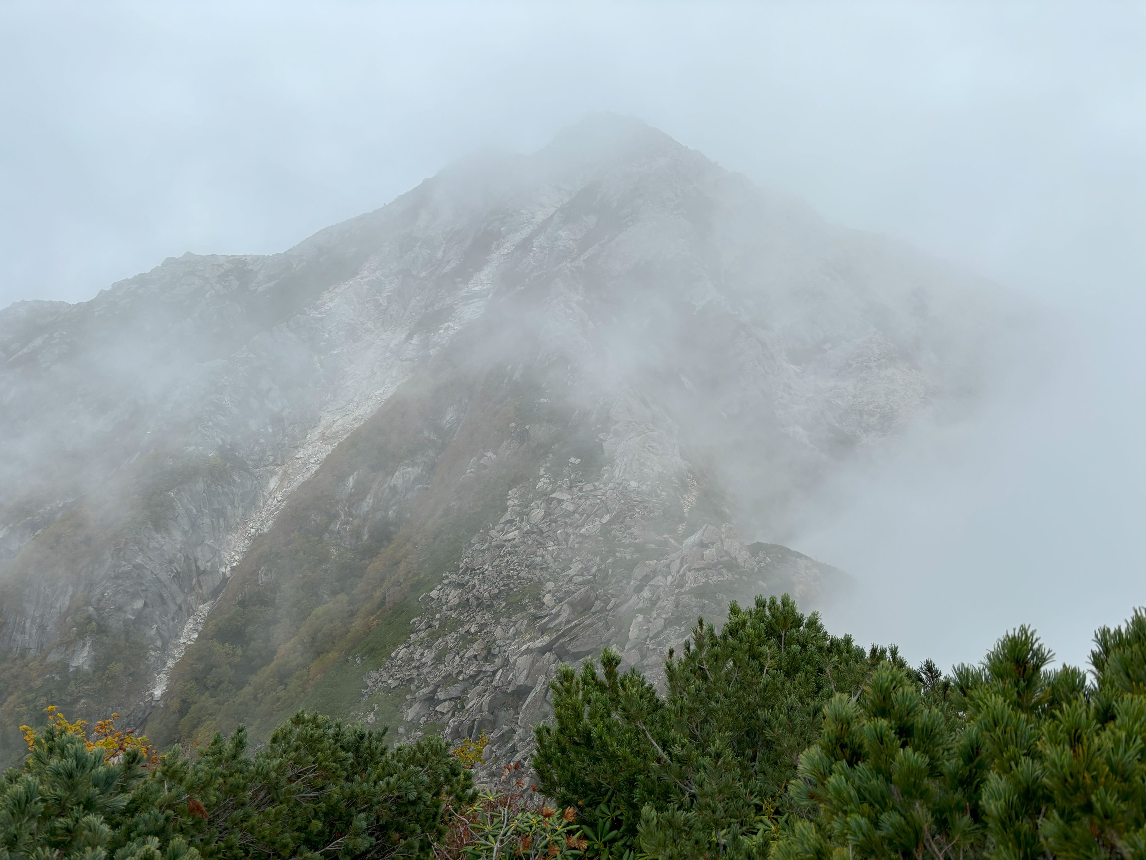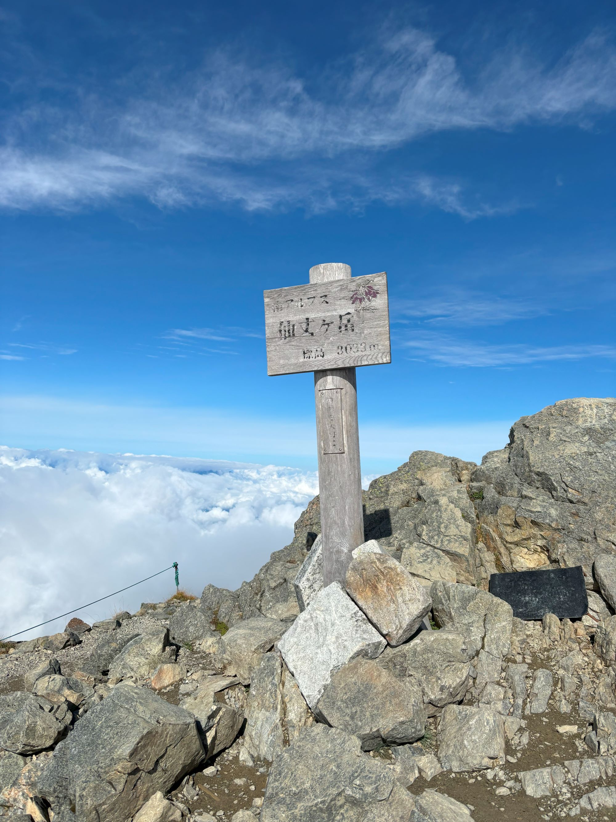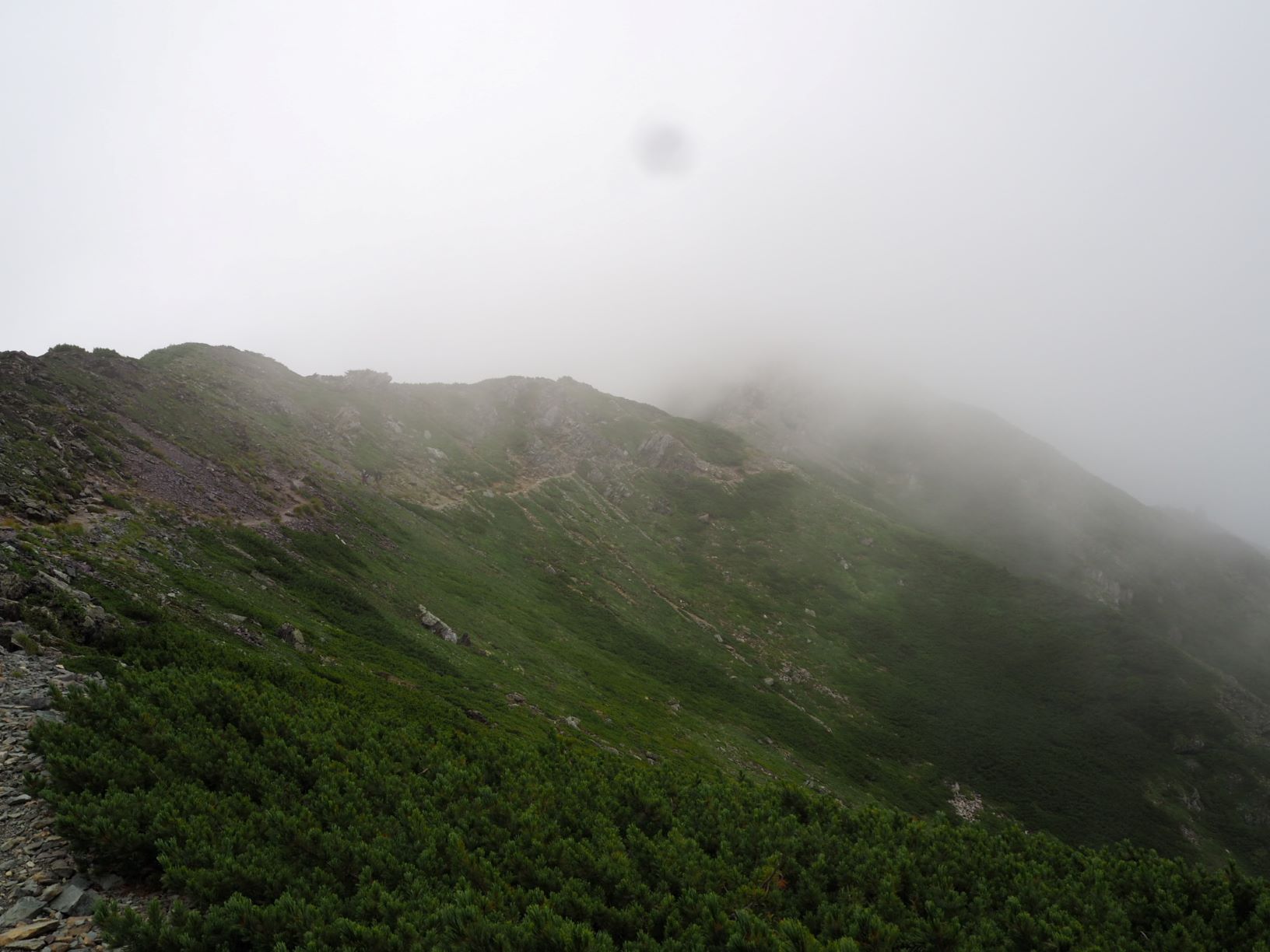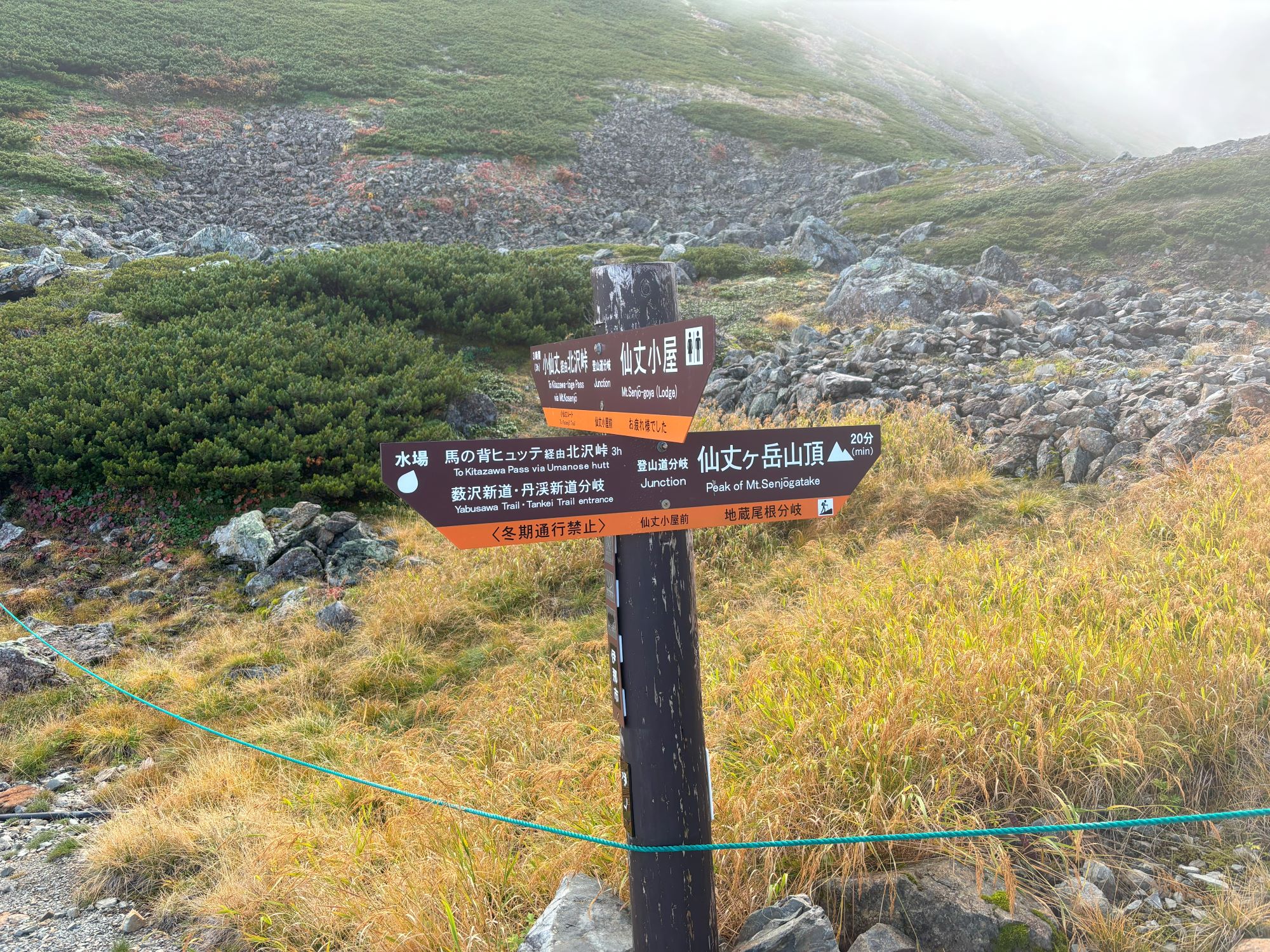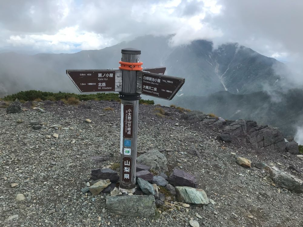地蔵岳と観音岳の間にある鳳凰小屋分岐点。地蔵岳を経由せずに鳳凰小屋に行くいわゆる『近道』があります。時と場合によってルート選びすればいいのかなと思います。 今回はあまりに天候がよかったので、鳳凰小屋から近道ではなく、地蔵岳を登って観音岳に出るルートを選びました。