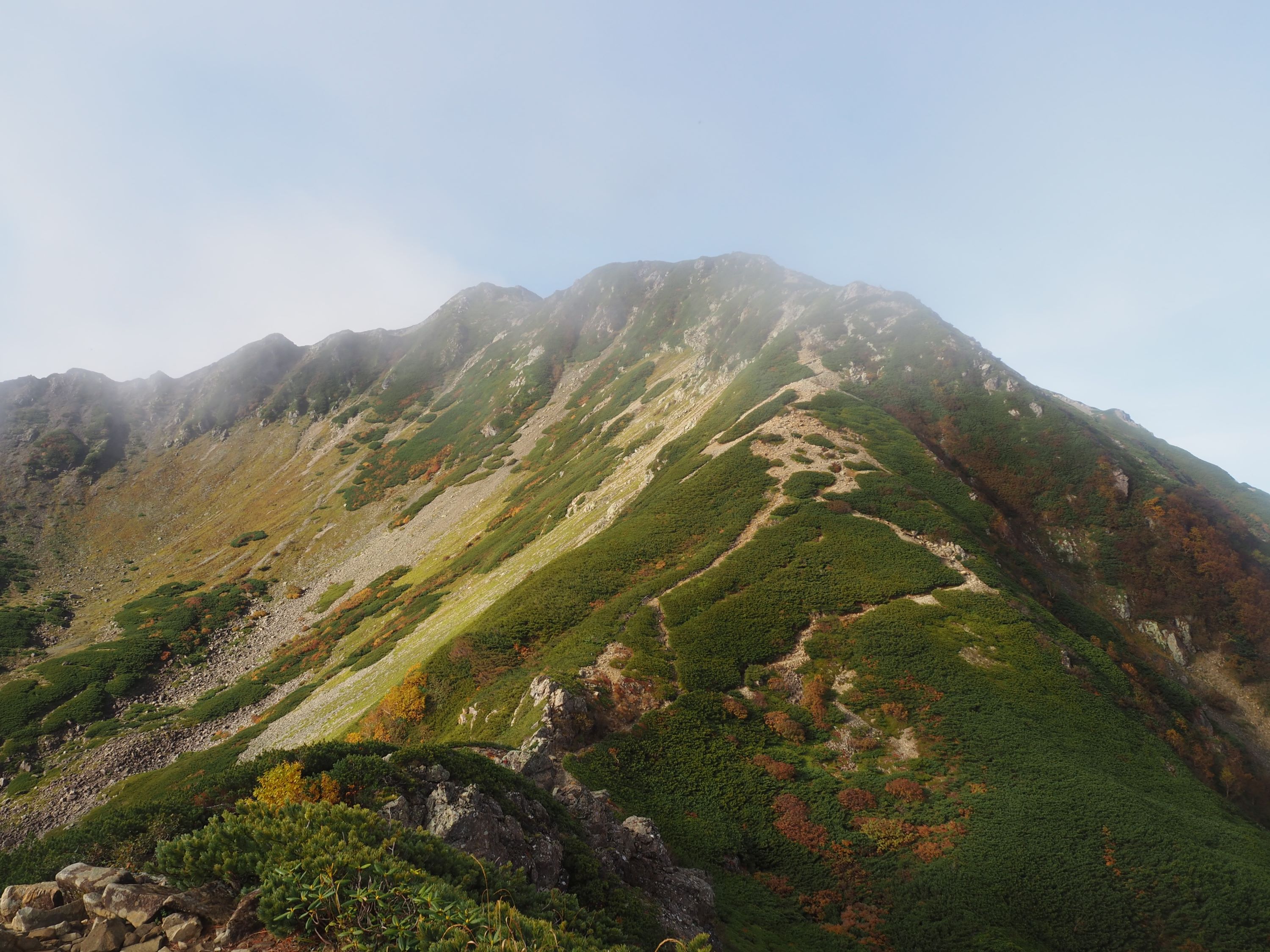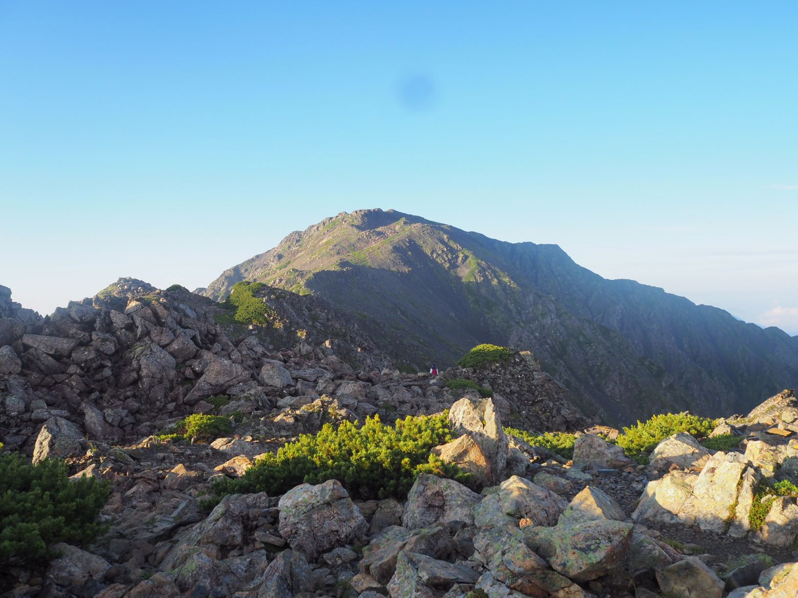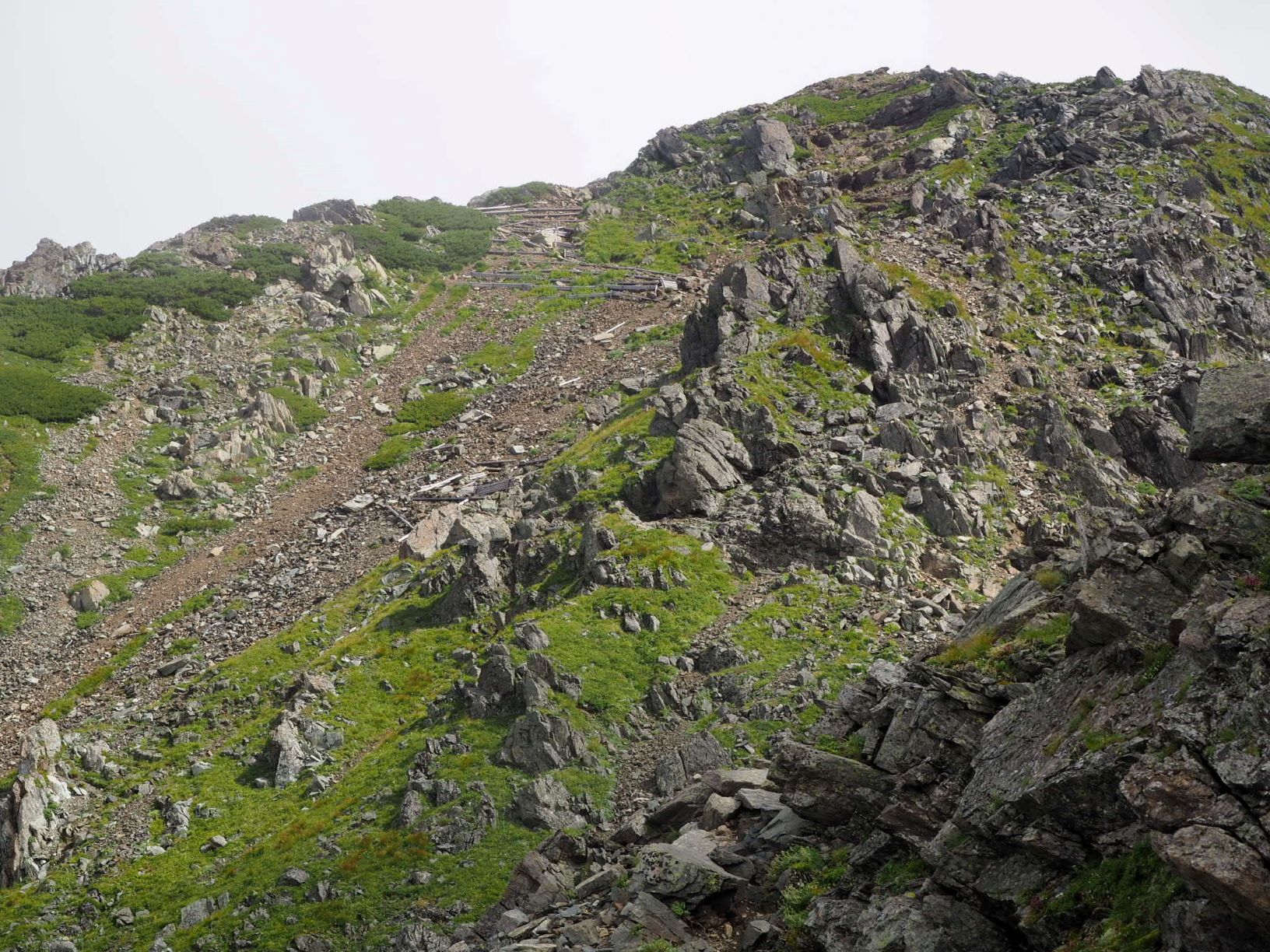 今度は逆側から北岳を登ります。北岳から北岳山荘側に下る時かなり急坂だったので、登るのきついだろうと思っていたら、案の定、急登できつかったです。