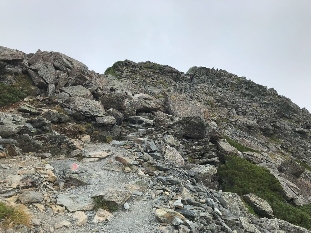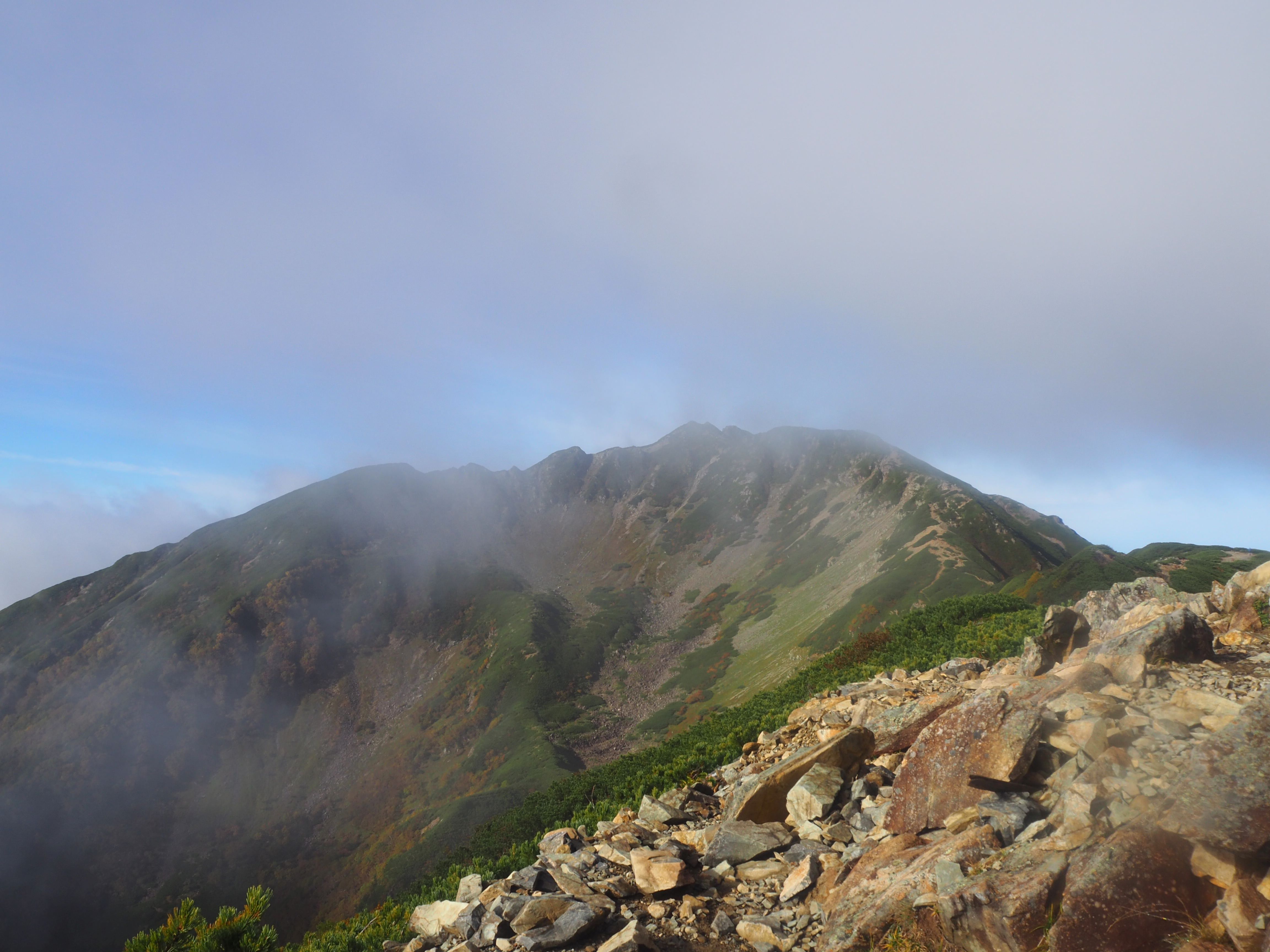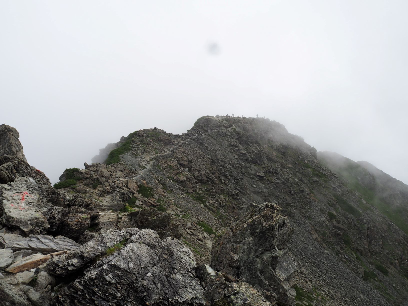 今度は逆側から北岳を登ります。北岳から北岳山荘側に下る時かなり急坂だったので、登るのきついだろうと思っていたら、案の定、急登できつかったです。