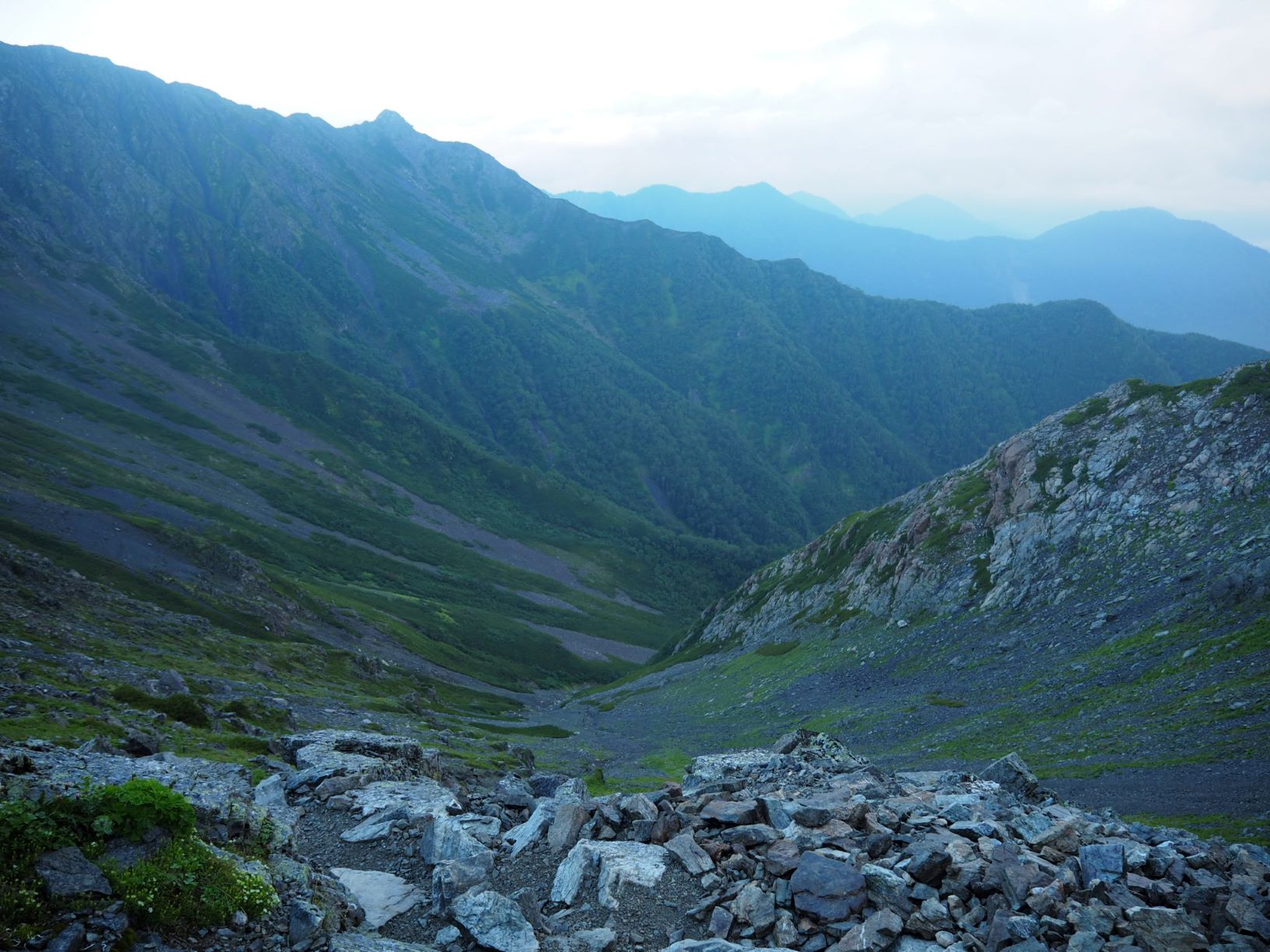 時間があれば、農鳥岳方面へ進みたいところでしたが、日程の都合で今回は登ってきた道を引き返します。スタート地点の広河原に最終のバスの時間に間に合うように戻るようにします。