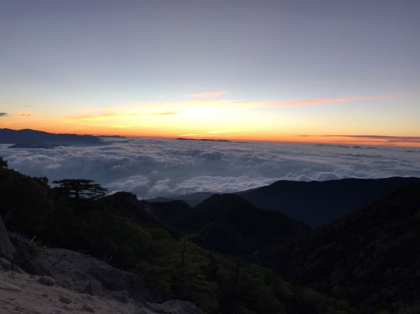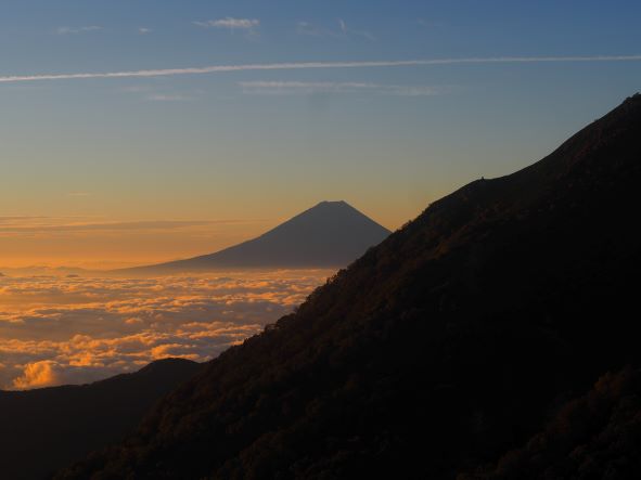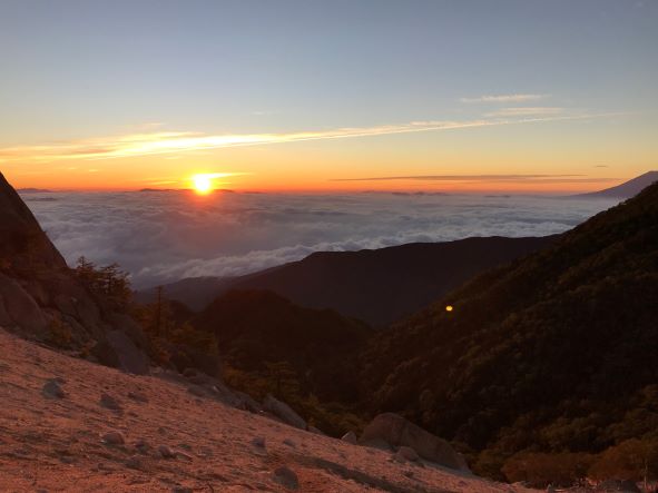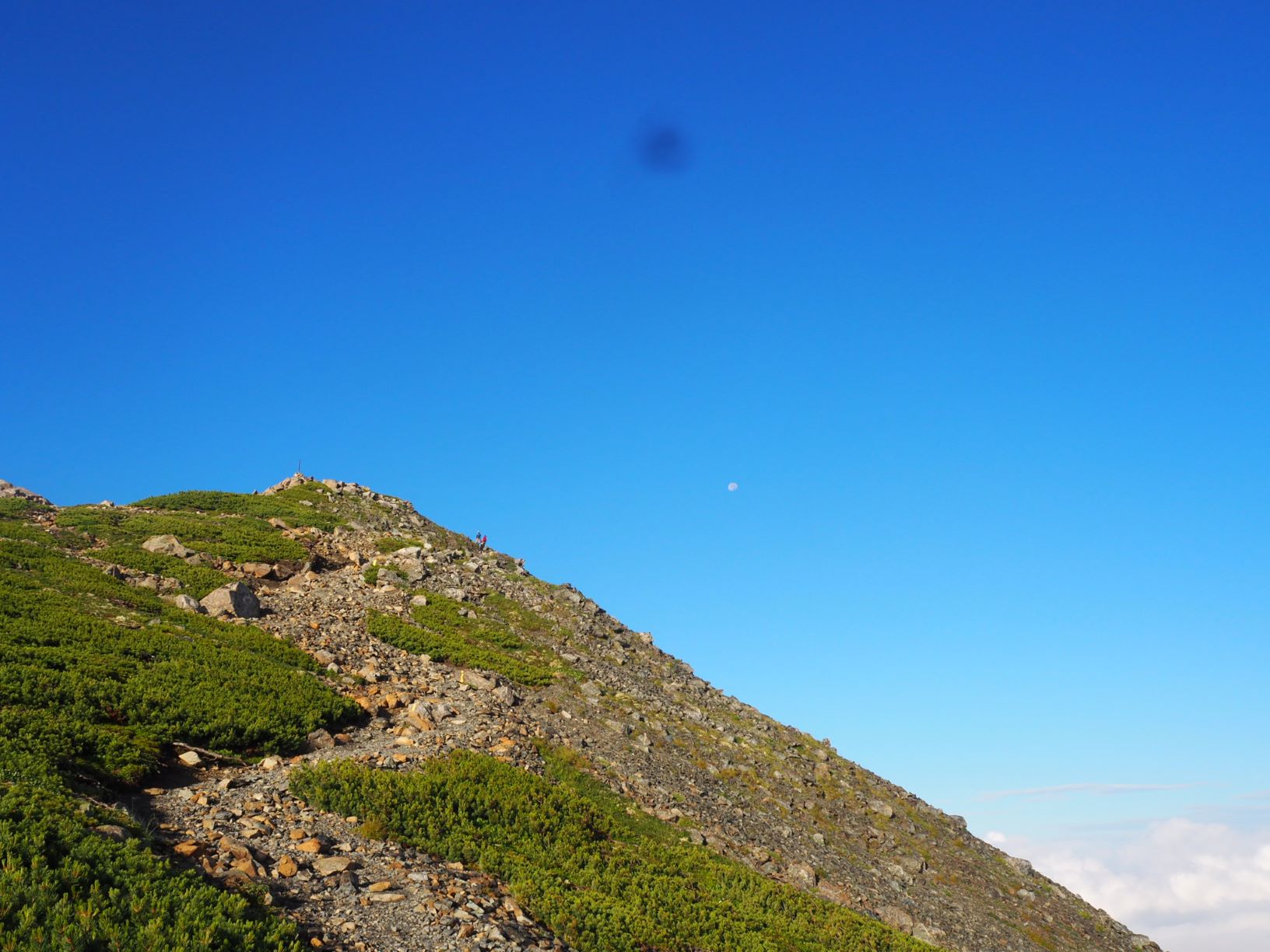 間ノ岳山頂近くから月も綺麗に見えていました。