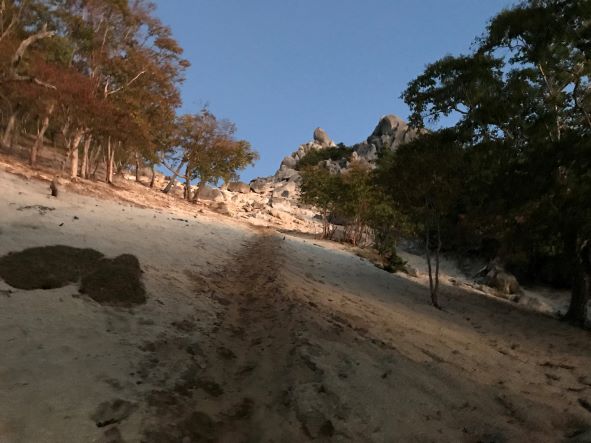 少ししんどい急な登りが続きます。しばらく上ると、夫婦岩があります。