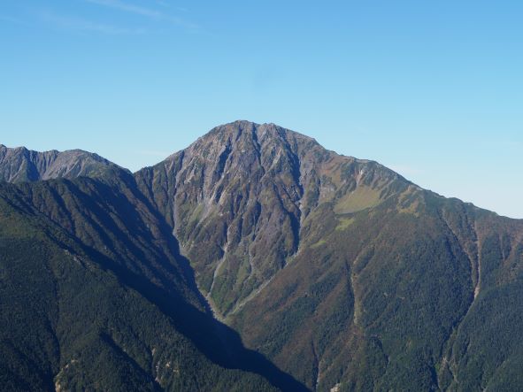 間ノ岳が近づいてきたところで、振り返ると、北岳がだいぶん遠くになりました。綺麗に見えています。