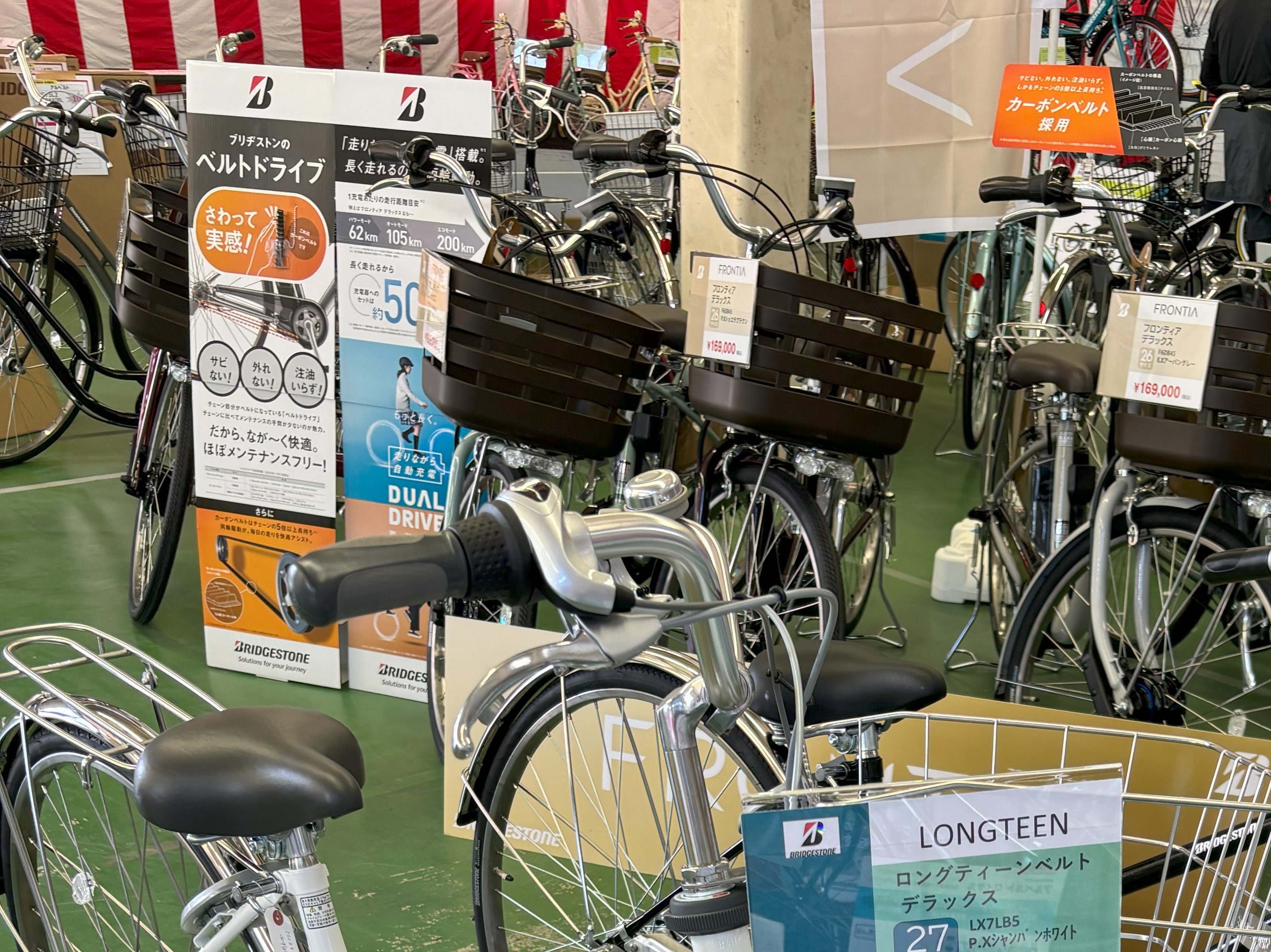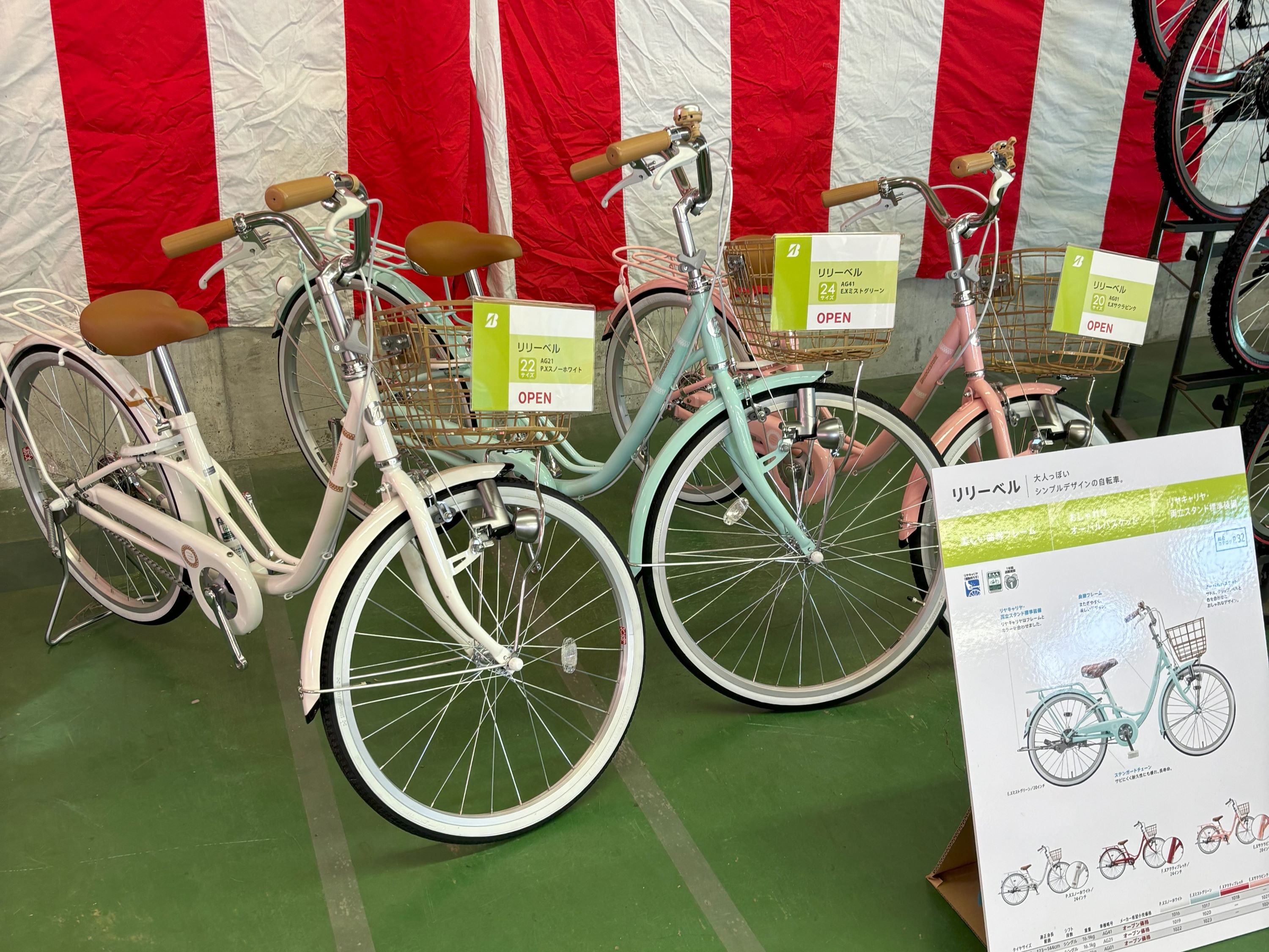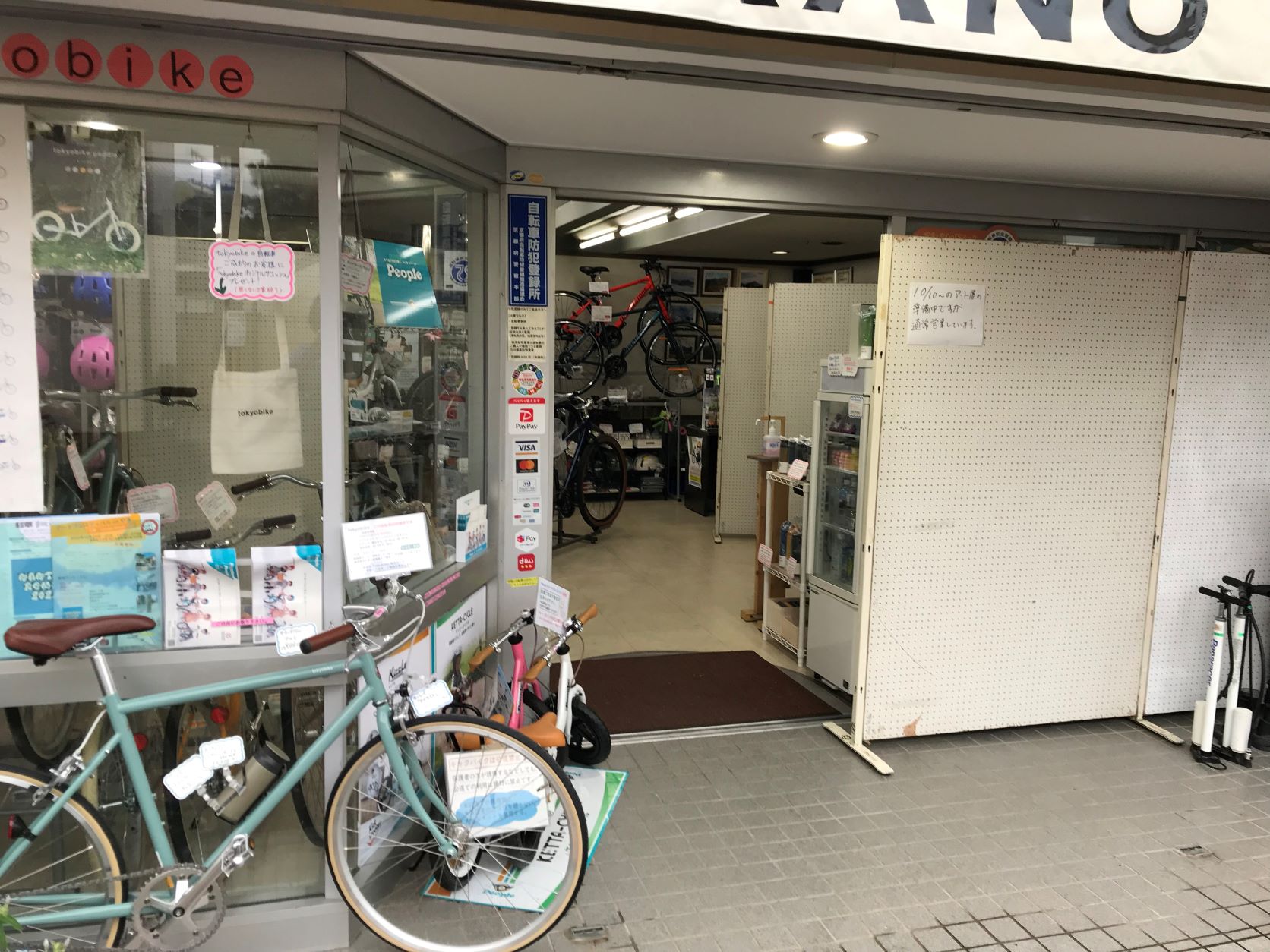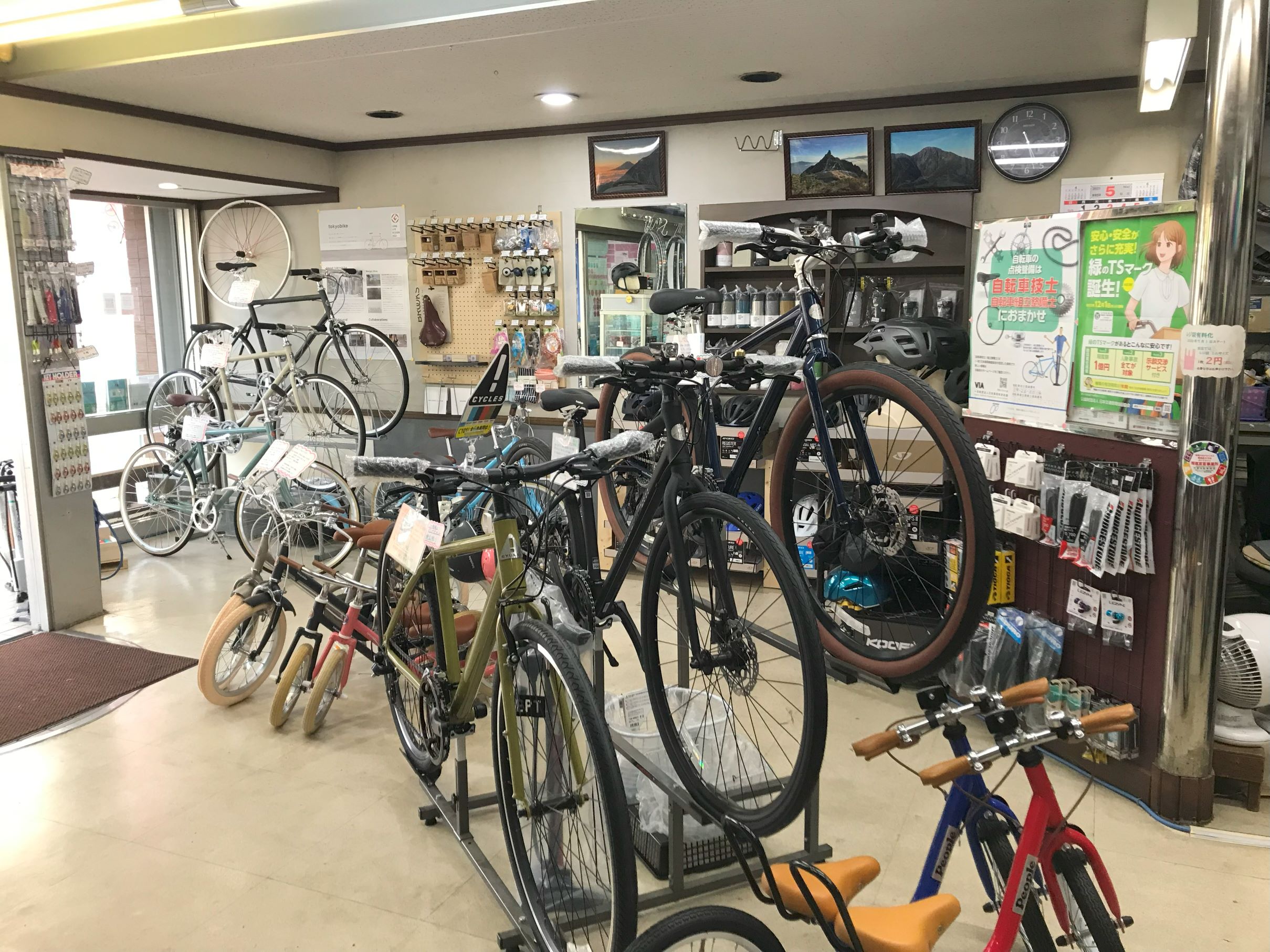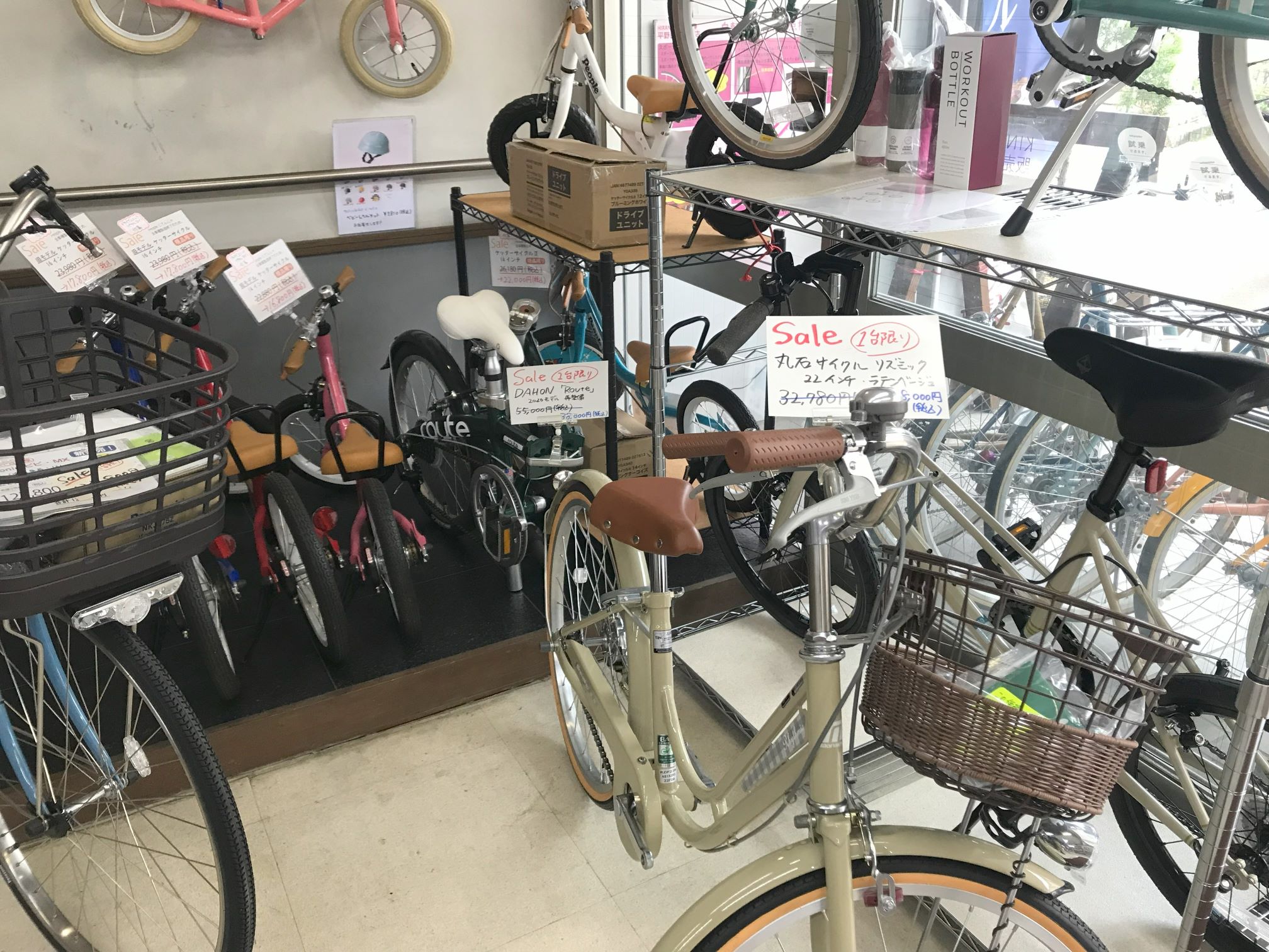 店頭→店舗内→店の奥へと順番に進んで見ていってください。(ついでに自転車も見ていってください!)