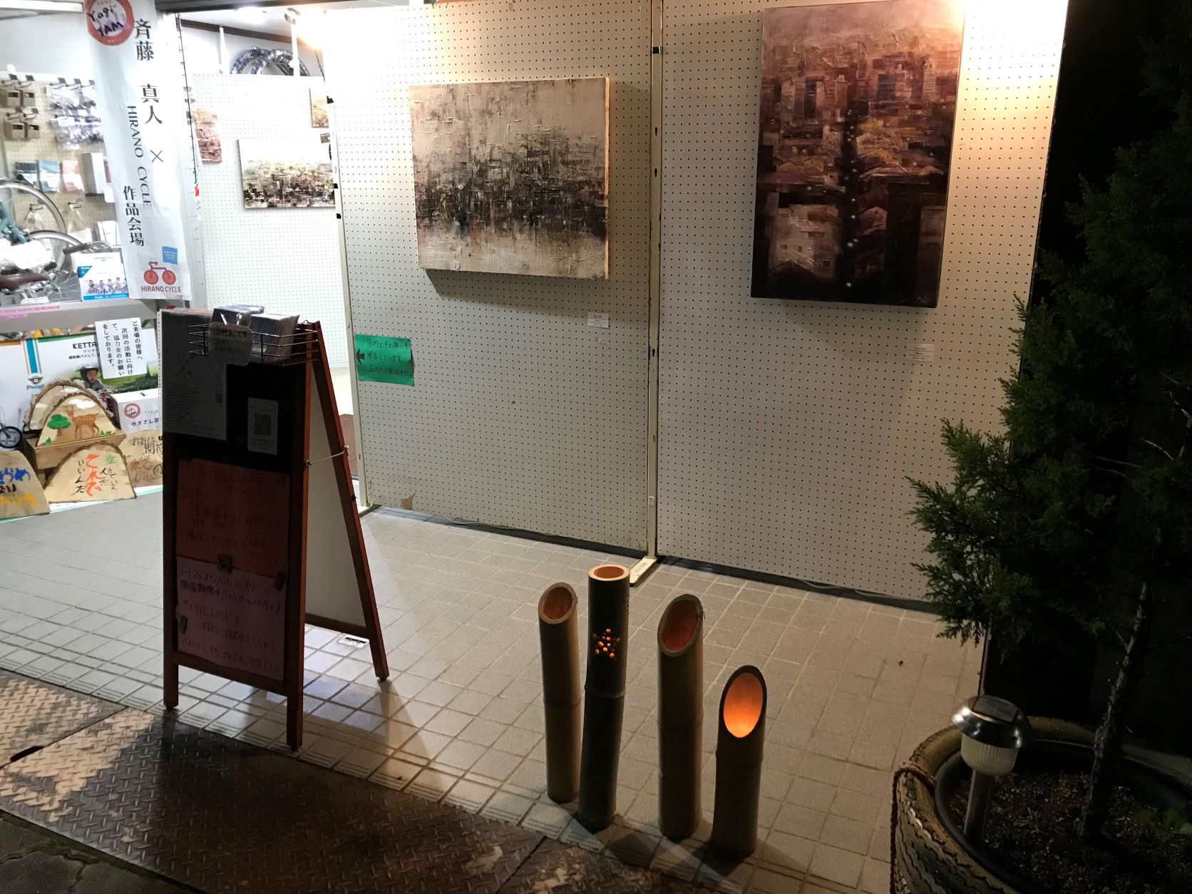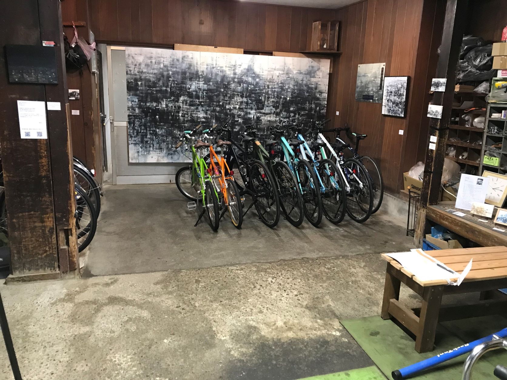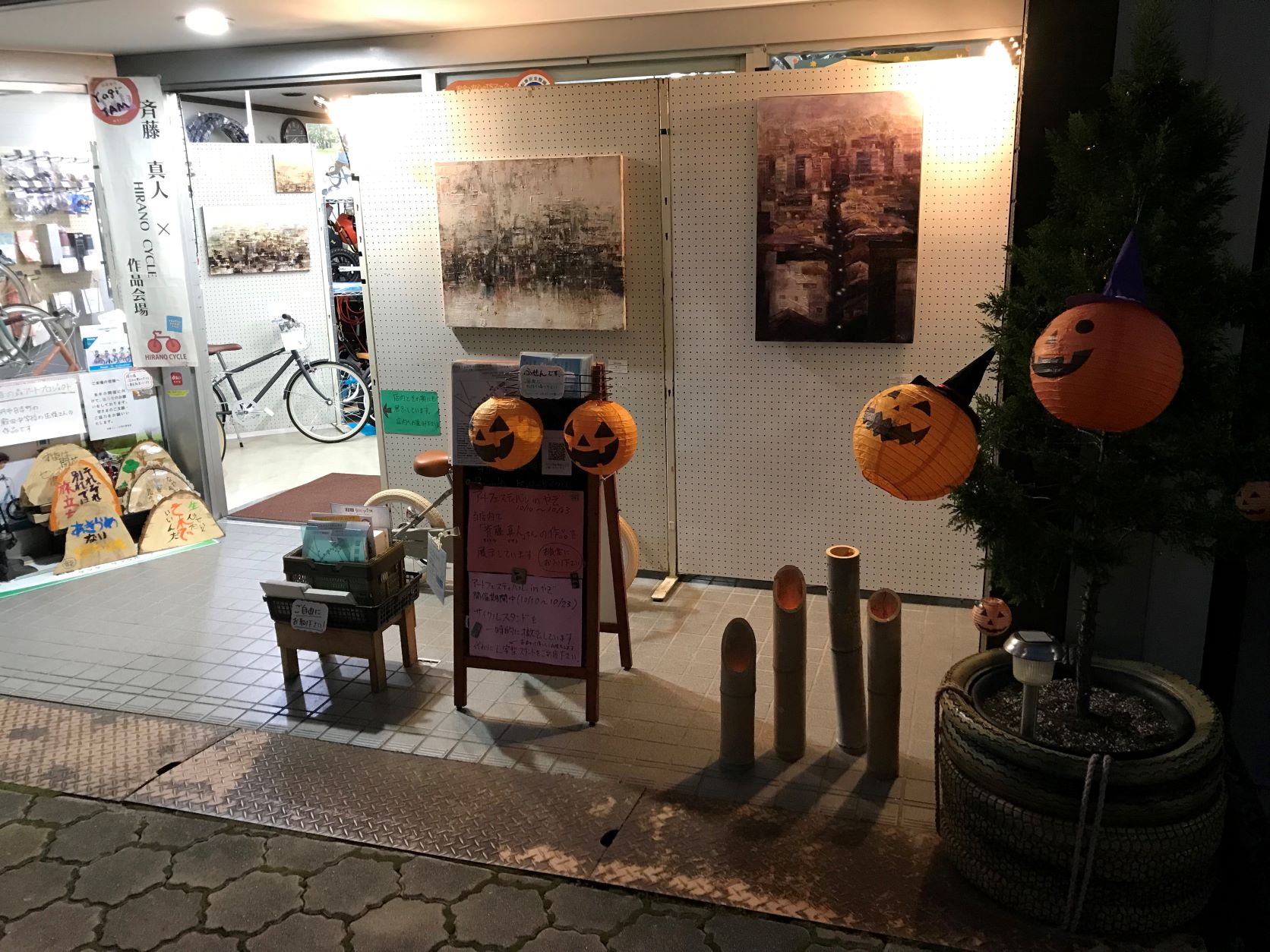 自転車店としても営業中の為、当方修理作業中の時もありますが、お気遣いなくアートを見に店舗に入ってきてください。