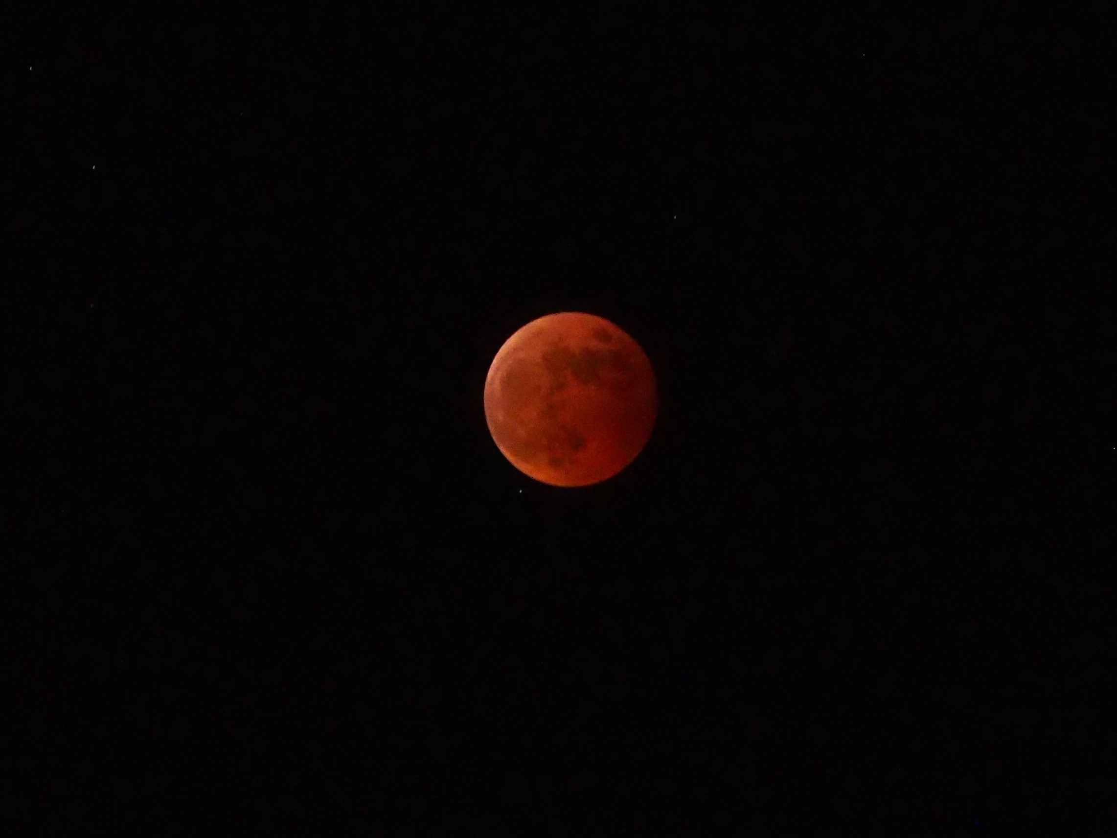 完全に影に入り皆既月食となった状態。