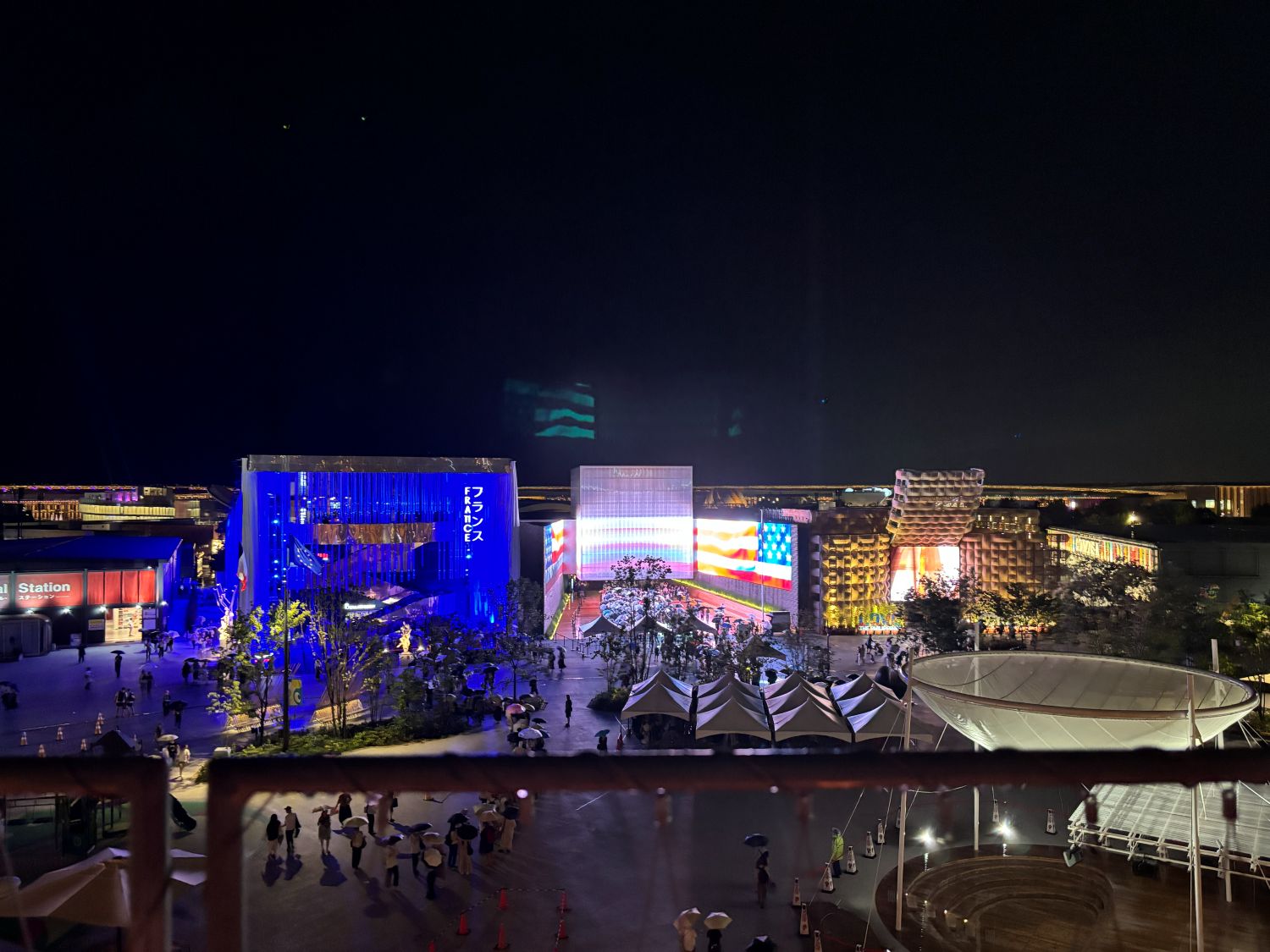 写真下は外観。夜になるとパビリオンがひときわ光り輝いていました。