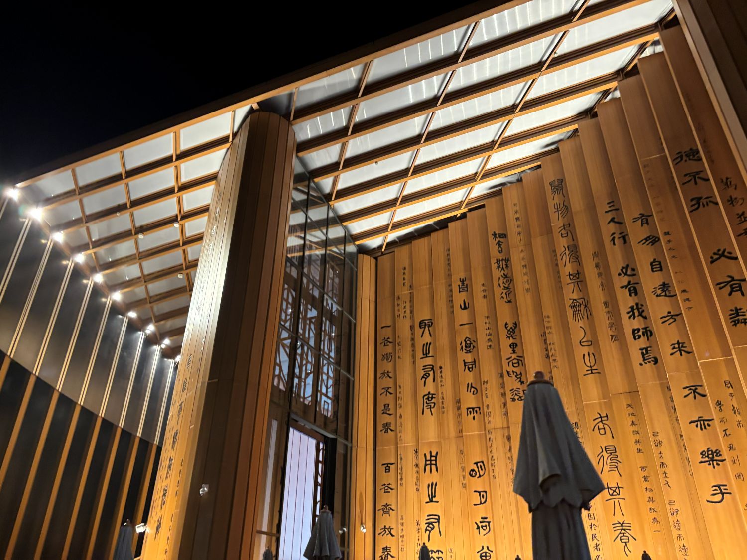かっこいい竹簡をモチーフにした外観が特徴の中国館。