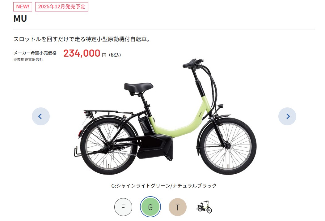 ↓電動アシスト自転車/Panasonic『MU』(特定小型原動機付自転車)