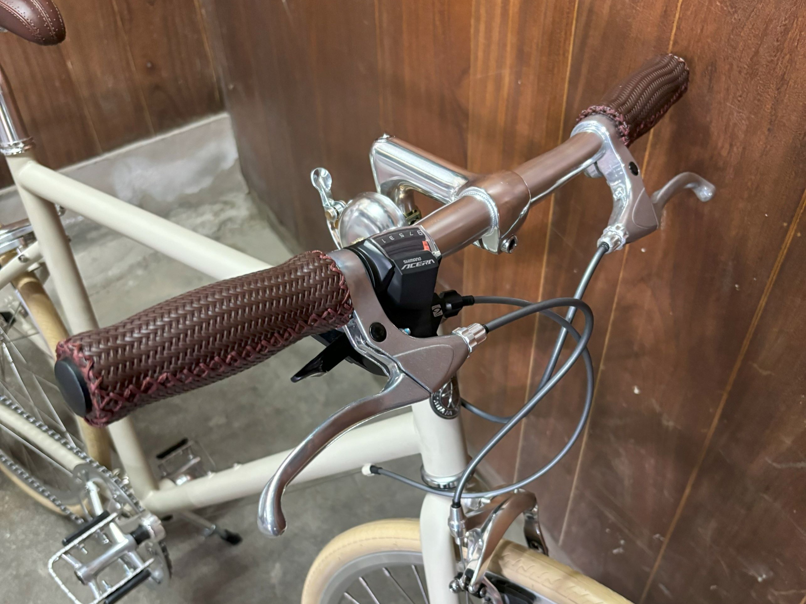 - クラシックな雰囲気のフレームに落ち着いたカラーの採用が魅力的な自転車です。